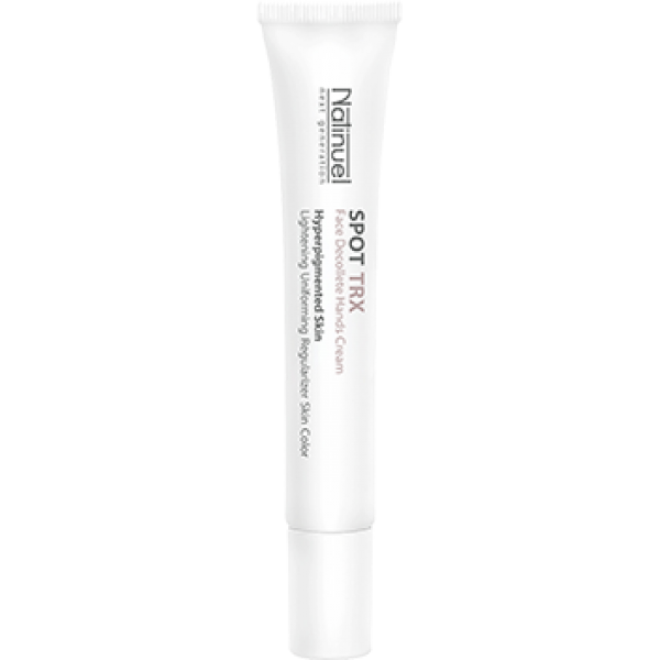 SPOT TRX - призначений для контролю над процесом меланогенезу і швидкого усунення шкірної дисхромії. Його формула з високою біохімічною активністю містить біоміметичні пептиди останнього покоління, інтегровані в активні комплекси і субстанції, такі як етіолін і Peel Moist. Крем був створений для багаторівневого впливу: сповільнювати і регулювати виробництво меланіну, полегшувати усунення гіперпігментованих клітин, вирівнювати колір шкіри і захищати шкіру від факторів, що викликають проблему. Регулярне застосування продукту швидко вирівнює колір поверхні шкіри і поступово діє на більш глибокі шари, знищуючи корінь проблеми.