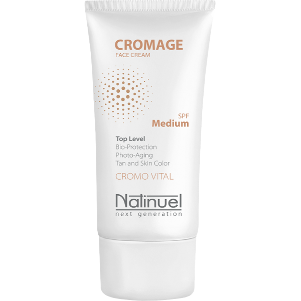 CROMAGE - новітній молекулярний багатофункціональний препарат, який впливає на біохімічні механізми, відповідальні за колір і загар шкіри. Крім того, завдяки синтезу біоактивних частинок, перешкоджає фотостарінню.